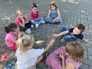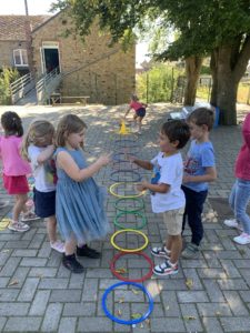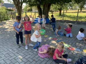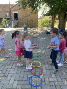 Les enfants de première primaire ont participé à des jeux coopératifs afin de découvrir la mascotte de la classe. Une manière de partager des bons moments, des rires, sans gagnant ni perdant, juste le plaisir d’être ensemble !